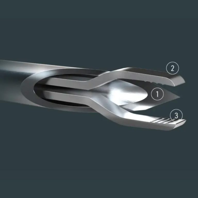 The instrument’s 2-in-1 design increases efficiency by enabling one-step maneuvers. This saves time in the operating room and minimizes the risk of complications